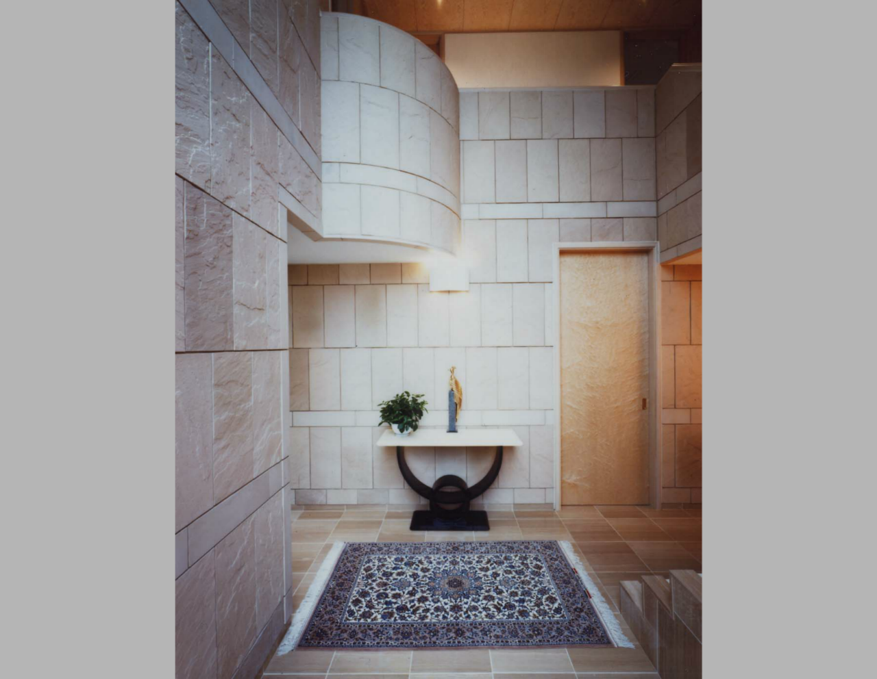 大きな庇は、日射を遮るだけでなく、建物全体を重厚で落ち着いた雰囲気にしています。
